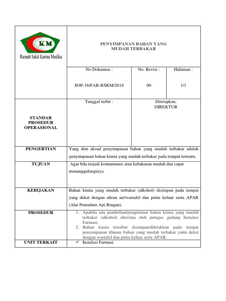Sop Penyimpanan Bahan Yang Mudah Terbakar Pdf